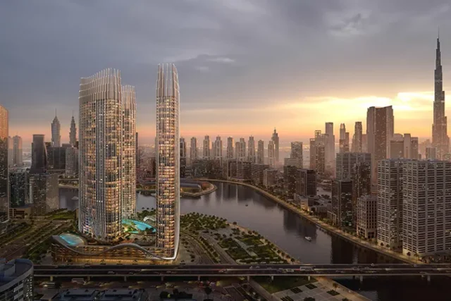Located in one of Dubai’s most prestigious business districts, standing as Business Bay’s first-ever mega-development. This trio of iconic towers will not only reshape the skyline but also serve as a symbol of progress and sophistication in the heart of the city. Rising majestically along the waterfront, the development is designed to provide stunning canal-facing views and a serene environment amidst the city’s vibrant energy. Whether you’re seeking a peaceful retreat or a lively hub, it provides an ideal balance, with spaces designed to offer both relaxation and entertainment in the heart of the city.